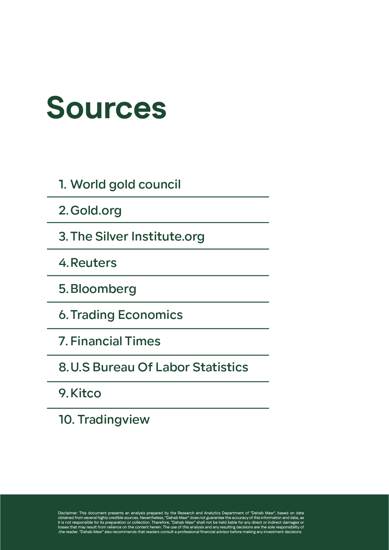 Gold prices declined 3.28% to $4,111/oz in the fourth week of October 2025, ending a nine-week rally. The drop was driven by profit-taking and improved investor sentiment following signs of easing U.S.–China trade tensions. Silver fell 6.24% to $48.62/oz. Locally, gold remained supported by EGP weakness and rising investment demand for bars and coins. Persistent central bank buying, geopolitical uncertainty, and ongoing U.S. monetary easing continue to support gold in the medium term. Technically, support is seen near $4,050 and resistance at $4,300, suggesting a potential correction before resuming the broader uptrend.
