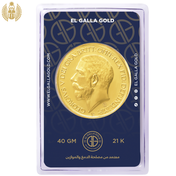 تعرّف على عرضنا الحصري من الجلَا جولد - خمسة جنيه الملك جورج الخامس، ٤٠ جرام، عيار ٢١، تعرض تصميمًا فريدًا يصور الملك جورج الخامس، واحدًا من أشهر ملوك المملكة المتحدة